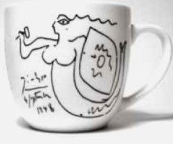 Варшавская Русалка Пикассо с молотком в руке. Изображение на сувенирной кружке.